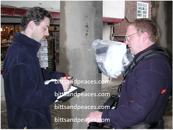 Neil Bates & myself mulling over the glamour of cool blue exhausted wet why the fuck are we filming in this weather? (photo by Ron Everett 2004)