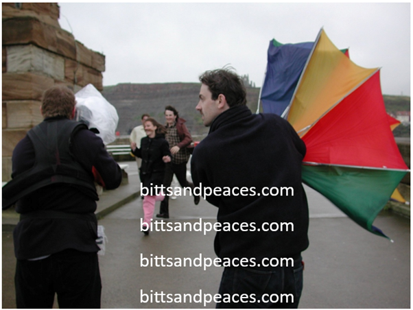 That’s me enjoying the British summer in Whitby. Producer Heather Mathews in the background in white. After an 18-hour day we had to reshoot when dry.